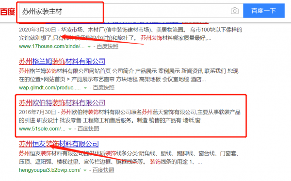 我們公司與蘇州歐伯特裝飾材料有限公司合作中,對(duì)這個(gè)公司所經(jīng)營(yíng)的家裝主材這個(gè)行業(yè)提供了關(guān)鍵詞搜索排名,與該公司的合作,更多的客戶讓我們公司為其提供關(guān)鍵詞搜索排名,通過(guò)每一次合作,我們公司不斷完善自己,同時(shí)希望合作伙伴在經(jīng)營(yíng)的路上越來(lái)越好。