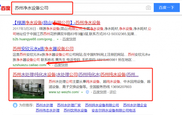 蘇州偉志水處理設備有限公司與我司簽下百度霸屏協(xié)議
