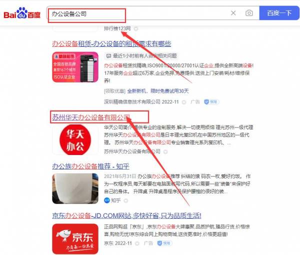 蘇州華*辦公設備有限公司關鍵詞排名案例欣賞