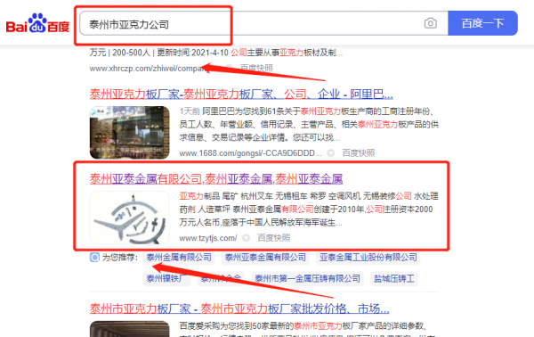 泰州亞*金屬有限公司SEO優化最快上詞效果展示