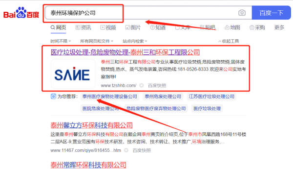 泰州三*環(huán)保工程有限公司SEO效果展示