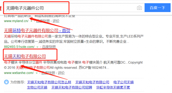 無(wú)錫天和電子有限公司選用我司企業(yè)電子元器件行業(yè)的網(wǎng)站優(yōu)化產(chǎn)品,其SEO關(guān)鍵詞有電子元器件。通過(guò)對(duì)搜索引擎目標(biāo)關(guān)鍵詞優(yōu)化,使目標(biāo)網(wǎng)站的相關(guān)信息顯示在百度首頁(yè),為企業(yè)挖掘更多的潛在客戶的同時(shí)帶來(lái)海量的商機(jī)。無(wú)錫天和電子有限公司成立于2001年,是經(jīng)無(wú)錫市市場(chǎng)監(jiān)督管理局審核的有資質(zhì)的公司,其統(tǒng)一社會(huì)信用代碼:91320200731188342U。公司地址:江蘇省無(wú)錫市南湖大道503號(hào)3幢301。