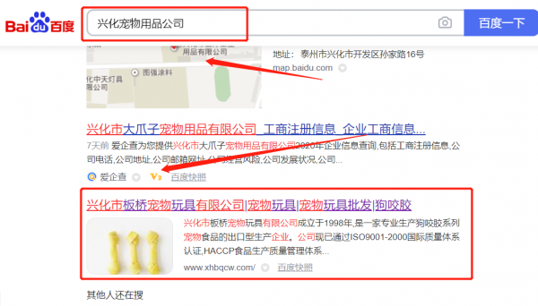 興化市*橋寵物玩具有限公司選用我司企業寵物用品的網站優化產品,其SEO關鍵詞有寵物用品。搜索品牌詞,首頁至少霸占5條,通過營銷型網站、媒體文章、口碑等方式,達到全方位霸屏,全面展示企業實力。興化市*橋寵物玩具有限公司成立于1998年,是經興化市市場監督管理局審核的有資質的公司,其統一社會信用代碼:913212817**188594P。公司地址:江蘇省興化市大垛鎮管阮村。