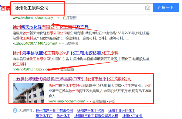 我們公司與徐州市建平化工有限公司合作中,對(duì)這個(gè)公司所經(jīng)營(yíng)的化工原料這個(gè)行業(yè)提供了百度快照排名,與該公司的合作,更多的客戶讓我們公司為其提供百度快照排名,通過每一次合作,我們公司不斷完善自己,同時(shí)希望合作伙伴在經(jīng)營(yíng)的路上越來越好。