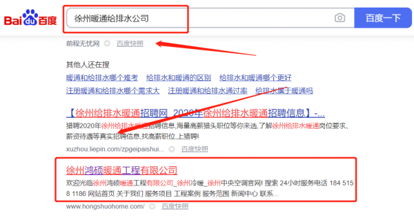徐州鴻*暖通工程有限公司百度關鍵詞排名最快上詞效果展示
