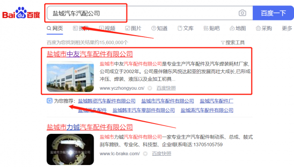 鹽城市中*汽車配件有限公司優化排名最快上詞效果展示