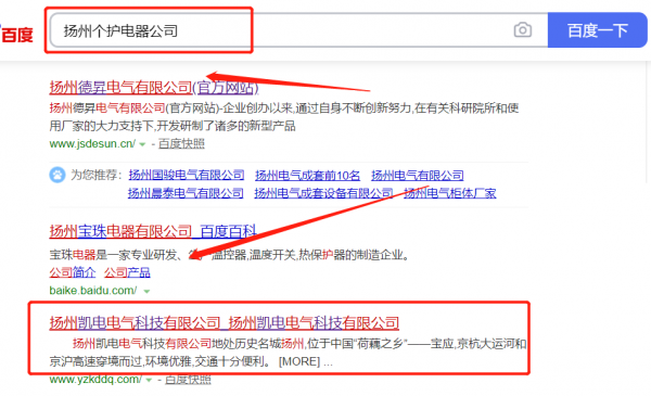 揚(yáng)州*電電氣科技有限公司百度關(guān)鍵詞排名保證在首頁效果