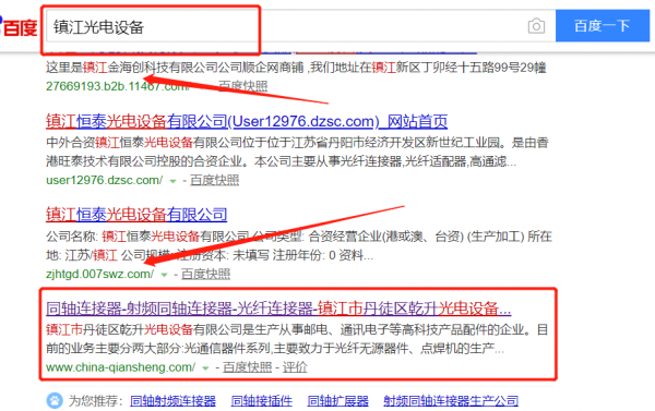 我們公司與鎮江市丹徒區乾升光電設備有限公司合作中,對這個公司所經營的光電設備這個行業提供了快速排名,與該公司的合作,更多的客戶讓我們公司為其提供快速排名,通過每一次合作,我們公司不斷完善自己,同時希望合作伙伴在經營的路上越來越好。