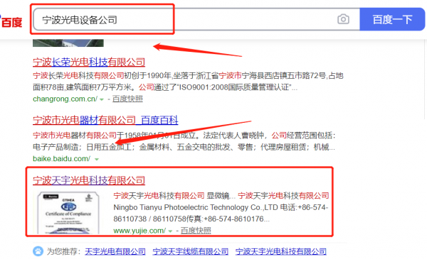 我們公司與寧波*宇光電科技有限公司合作中,對這個公司所經(jīng)營的光電設備這個行業(yè)提供了關(guān)鍵詞搜索排名,與該公司的合作,更多的客戶讓我們公司為其提供關(guān)鍵詞搜索排名,通過每一次合作,我們公司不斷完善自己,同時希望合作伙伴在經(jīng)營的路上越來越好。