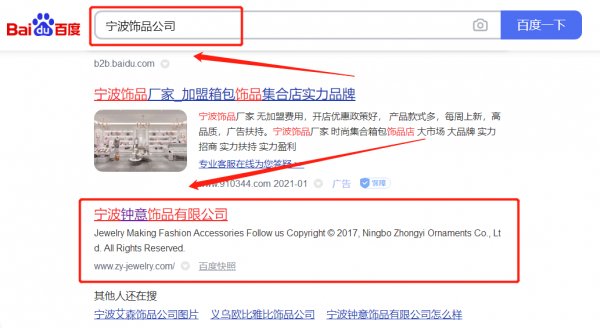 寧波*意飾品有限公司關鍵詞排名到首頁按天扣費