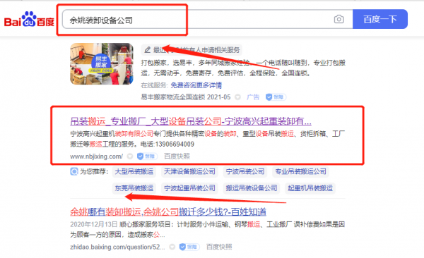 寧波*興起重裝卸有限公司選用我司企業裝卸設備的網站優化產品,其SEO關鍵詞有裝卸設備。3-15天快速提升網站前五頁關鍵詞排名上百度首頁,幫助客戶增加流量,提高成交量,為您帶來更多潛在客戶,打造客戶品牌影響力。寧波*興起重裝卸有限公司成立于2007年,是經寧波市市場監督管理局審核的有資質的公司,其統一社會信用代碼:91330206L**711768D。公司地址:浙江省寧波市北侖區新碶街道進港中路471號 。