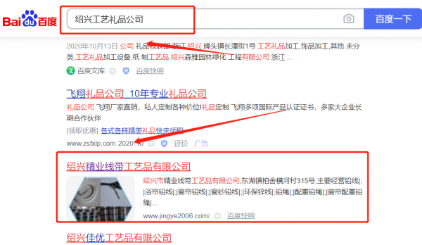 紹興市精*線帶工藝品有限公司百度排名到首頁按天扣費