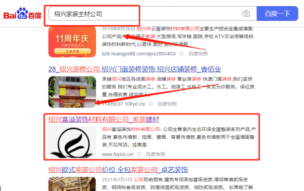 紹興富*裝飾材料有限公司新站排名到首頁無排名不收費
