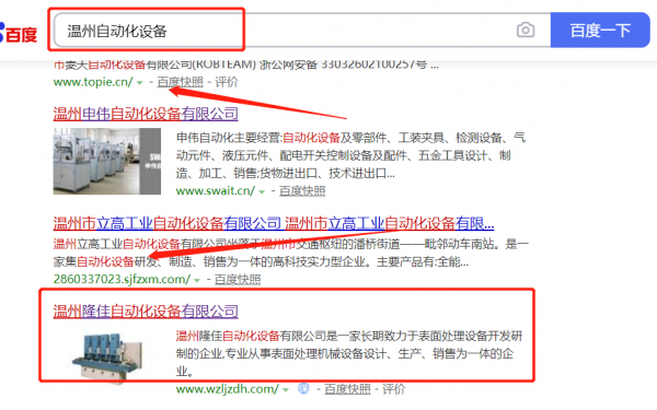 我們公司與溫州*佳自動化設備有限公司合作中,對這個公司所經營的自動化設備這個行業提供了百度快照排名,與該公司的合作,更多的客戶讓我們公司為其提供百度快照排名,通過每一次合作,我們公司不斷完善自己,同時希望合作伙伴在經營的路上越來越好。