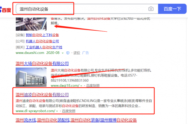 我們公司與溫州*凌自動(dòng)化設(shè)備有限公司合作中,對(duì)這個(gè)公司所經(jīng)營(yíng)的自動(dòng)化設(shè)備這個(gè)行業(yè)提供了百度快照排名,與該公司的合作,更多的客戶讓我們公司為其提供百度快照排名,通過每一次合作,我們公司不斷完善自己,同時(shí)希望合作伙伴在經(jīng)營(yíng)的路上越來(lái)越好。
