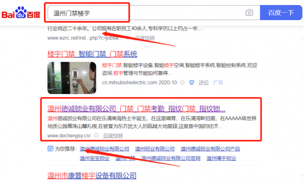溫州*誠鎖業有限公司選用我司企業門禁樓宇的網站優化產品,其SEO關鍵詞有門禁樓宇。從站內到站外,人工智能全新搜索優化技術,最快7天關鍵詞排名上首頁,利用互聯網營銷手法,多平臺,多樣化進行品牌內容鋪設,營造企業正面形象。溫州*誠鎖業有限公司成立于2016年,是經溫州市市場監督管理局審核的有資質的公司,其統一社會信用代碼:91330382M**85C8840。公司地址:浙江省溫州市樂清市樂成街道呈祥路300號。