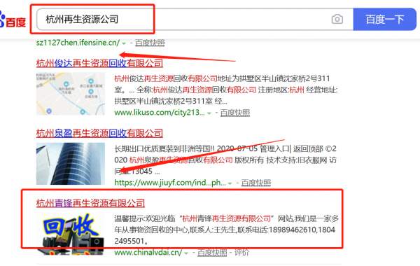 杭州青*再生資源有限公司與本司簽約百度快照排名協議
