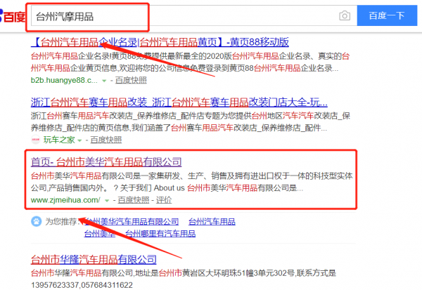 我們公司與臺(tái)州市美華汽車用品有限公司合作中,對(duì)這個(gè)公司所經(jīng)營的汽摩用品這個(gè)行業(yè)提供了快速排名,與該公司的合作,更多的客戶讓我們公司為其提供快速排名,通過每一次合作,我們公司不斷完善自己,同時(shí)希望合作伙伴在經(jīng)營的路上越來越好。