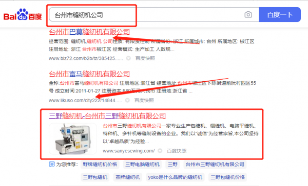 臺州森*縫紉機有限公司SEO優化到首頁按天扣費