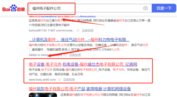 福州威*杰電子有限公司選用我司企業(yè)電子配件行業(yè)的網(wǎng)站優(yōu)化產(chǎn)品,其SEO關(guān)鍵詞有電子配件。海洋網(wǎng)絡(luò)互聯(lián)擁有十幾名專業(yè)深圳SEO工程師,文案策劃,海量軟文資源,外鏈團(tuán)隊(duì)和編輯團(tuán)隊(duì),排名有保障。網(wǎng)站做好以后,我們免費(fèi)幫您提交熱門搜索引擎,讓百度收錄,并且?guī)湍鷥?yōu)化公司品牌關(guān)鍵詞排名。福州威*杰電子有限公司成立于2016年,是經(jīng)福州市市場(chǎng)監(jiān)督管理局審核的有資質(zhì)的公司,其統(tǒng)一社會(huì)信用代碼:91350104M**4681P14。公司地址:福建省福州市倉山區(qū)建新鎮(zhèn)紅江路79號(hào)福州升盛機(jī)電有限公司廠房改擴(kuò)建工程整座3層382室。