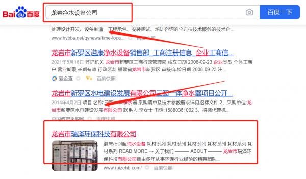 龍巖市瑞*環保科技有限公司選用我司企業凈水設備的網站優化產品,其SEO關鍵詞有凈水設備。為用戶分析百度、360等SEO優化數據,可全站委托關鍵詞SEO優化外包,在投入成本最小化的同時實現客戶利益的最大化。龍巖市瑞*環保科技有限公司成立于2013年,是經龍巖市市場監督管理局審核的有資質的公司,其統一社會信用代碼:913508000**236911M。公司地址:福建省龍巖市新羅區東肖鎮曲潭路15號孵化大樓3樓301#(龍巖經濟技術開發區)。