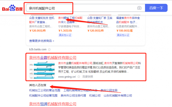 泉州市*霞機械配件有限公司新站排名快上詞效果展示