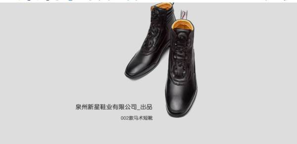 泉州新*鞋業(yè)有限公司是一家集研發(fā),生產(chǎn),批發(fā)銷售于一體的鞋業(yè)公司,主要生產(chǎn)馬術(shù)短靴,長靴,護腿,馬蹄靴,醫(yī)靴等馬術(shù)用品。專業(yè)生產(chǎn)馬術(shù)用品13年,純手工制作。出口德國,法國,意大利,荷蘭,比利時,韓國,日本等十幾個國家。每年出口量達20余萬雙。隨著國內(nèi)馬術(shù)行業(yè)蓬勃發(fā)展,2017年起開展國內(nèi)業(yè)務(wù)。為國內(nèi)各大品牌商提供設(shè)計研發(fā),貼牌生產(chǎn),私人訂制等服務(wù)。本著以質(zhì)量求生存,以信譽求發(fā)展的企業(yè)態(tài)度,真誠邀您合作。