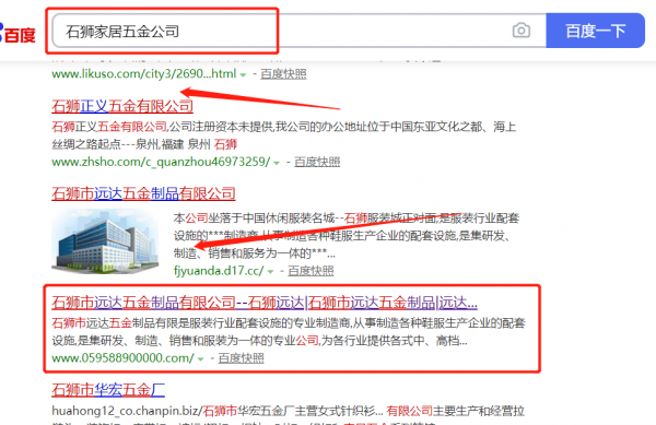 石獅市*達(dá)五金制品有限公司選用我司企業(yè)家居五金的網(wǎng)站優(yōu)化產(chǎn)品,其SEO關(guān)鍵詞有家居五金。SEO排名24小時在線,任何時間都能讓客戶看到你,SEO屬于搜索引擎營銷,獲取的流量更精準(zhǔn),能夠給企業(yè)帶來持續(xù)不斷的優(yōu)質(zhì)營銷訂單。石獅市*達(dá)五金制品有限公司成立于1999年,是經(jīng)石獅市市場監(jiān)督管理局審核的有資質(zhì)的公司,其統(tǒng)一社會信用代碼:913505817**35639XW。公司地址:福建省泉州市石獅市永寧鎮(zhèn)黃金大道北側(cè)。