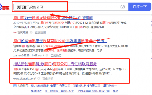 福達*創通訊科技(廈門)有限公司百度排名最快上詞效果展示