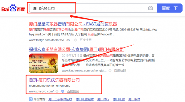 廈門樂*樂器有限公司百度排名保證在首頁效果