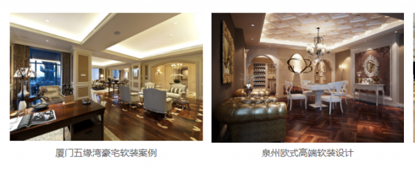 廈門家居*軟裝設(shè)計有限公司,專注于地產(chǎn)樣板房,售樓處,豪宅,別墅,會所,星級酒店軟裝設(shè)計。家居薈是集設(shè)計配套實(shí)施為一體化的專業(yè)軟裝服務(wù)體系,是一家注重研究和提升高素質(zhì)人群的生活方式為至尚追求的專業(yè)軟裝設(shè)計公司。以“臻選全球·空間美學(xué)·環(huán)保家居”為公司理念,以尊重“人、空間、大自然”的設(shè)計思路,將文化、藝術(shù)和品位植入每個軟裝作品中,為客戶提供最具藝術(shù)價值的整體家居軟裝一站式服務(wù)。家居薈以不斷發(fā)掘和營造空間藝術(shù)內(nèi)涵為導(dǎo)向,以提供全球高品質(zhì)環(huán)保家居產(chǎn)品為準(zhǔn)則,專業(yè)提供住宅空間、商業(yè)空間和辦公空間整體軟裝解決方案。家居匯擁有高級軟裝設(shè)計師團(tuán)隊,我們的設(shè)計方案受到客戶一致認(rèn)可和好評,我們可以滿足不同風(fēng)格的軟裝訴求。家居薈軟裝服務(wù)內(nèi)容:整體家具配套、燈飾、布藝(窗簾、墻紙墻布和床上用品等)、裝飾品、掛畫擺件、花藝和各類藝術(shù)家居裝飾品的整體陳設(shè)布場。