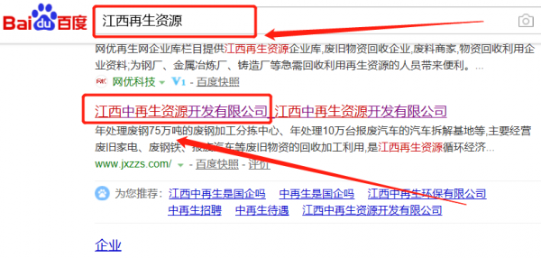 江西中再生資源開發(fā)有限公司跟本公司簽訂快速排名合同