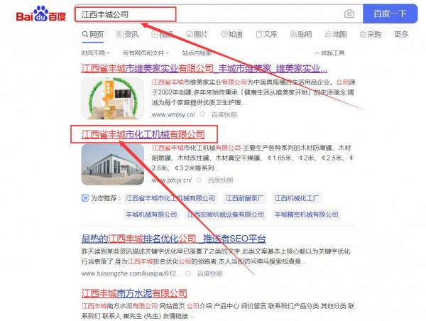 江西省豐城市*工機械有限公司百度關鍵詞排名保證在首頁效果
