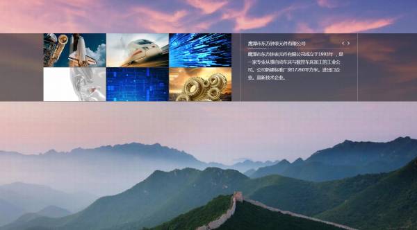 鷹潭市東*鐘表元件有限公司選用我司企業鐘表行業的網站優化產品,其SEO關鍵詞有 鷹潭市東*鐘表元件有限公司。其特點是用很合適的展示方式、展示效果、站點框架,把客戶及其用戶很關心的問題突出表現;并以簡潔明朗的設計風格,清晰展現公司水平實力,確保一秒抓住目標用戶眼球,給用戶留下良好的第一印象。鷹潭市東*鐘表元件有限公司成立于2000年,是經鷹潭市市場監督管理局審核的有資質的公司,其統一社會信用代碼:91360622**39221489。公司地址:江西省余江區錦江工業區。