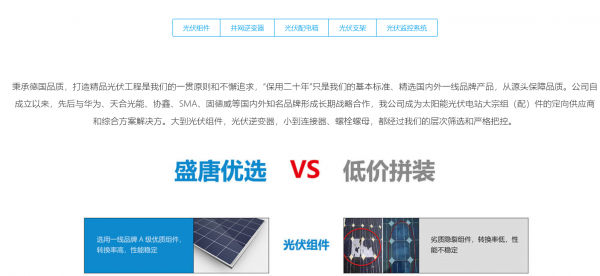 山東盛唐新能源電力股份有限公司成立于2013年,于2016年8月完成股份制改革,是一家引進德國先進經驗的高新技術企業,淄博市光伏行業協會會長單位。公司位于山東省淄博市經濟開發區新華大道3009號。是山東省首家“一站式”光伏發電系統提供商。公司曾多次受到省、市級發改委、國家電網等部門的高度關注,吸引了大批戰略投資者,并與國內外多家光伏一線品牌企業建立了長期戰略合作關系。盛唐新能源是一家重視品牌持續建設的公司,從成立之日起就樹立最高品質,最優服務的品牌理念,重視工程的質量管控,理解客戶的價值追求。公司全體成員抱著回報社會,愛護環境的理念,全心全意服務每一位客戶,關注細節,不斷創新,同朝氣蓬勃的光伏新興產業一起邁向美好的未來。