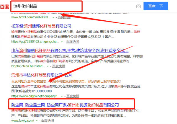 我們公司與濱州市優(yōu)源化纖制品有限公司合作中,對這個公司所經(jīng)營的化纖制品這個行業(yè)提供了快速排名,與該公司的合作,更多的客戶讓我們公司為其提供快速排名,通過每一次合作,我們公司不斷完善自己,同時希望合作伙伴在經(jīng)營的路上越來越好。