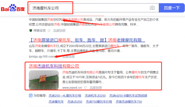 濟南*迪機車科技有限公司網站推廣最快上詞效果展示