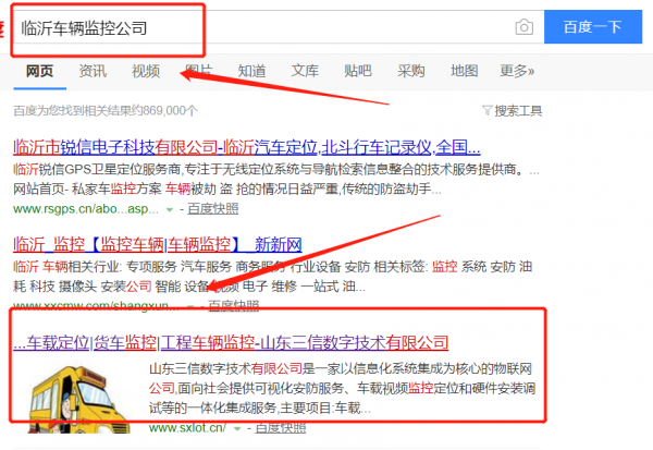 我們公司與山東三信數字技術有限公司合作中,對這個公司所經營的車輛監控這個行業提供了百度快照排名,與該公司的合作,更多的客戶讓我們公司為其提供百度快照排名,通過每一次合作,我們公司不斷完善自己,同時希望合作伙伴在經營的路上越來越好。