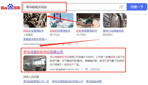 青島鴻*船舶用品有限公司選用我司企業(yè)船舶及用品行業(yè)的網(wǎng)站優(yōu)化產(chǎn)品,其SEO關(guān)鍵詞有船舶及用品。通過(guò)對(duì)搜索引擎目標(biāo)關(guān)鍵詞優(yōu)化,使目標(biāo)網(wǎng)站的相關(guān)信息顯示在百度首頁(yè),為企業(yè)挖掘更多的潛在客戶的同時(shí)帶來(lái)海量的商機(jī)。青島鴻*船舶用品有限公司成立于1988年,是經(jīng)青島市市場(chǎng)監(jiān)督管理局審核的有資質(zhì)的公司,其統(tǒng)一社會(huì)信用代碼:91370282M**C5K4A2K。公司地址:山東省青島市即墨市通濟(jì)街道辦事處孫家莊頭村。
