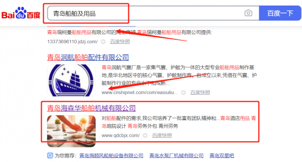 青島海*華船舶機械有限公司選用我司企業(yè)船舶及用品行業(yè)的網(wǎng)站優(yōu)化產(chǎn)品,其SEO關(guān)鍵詞有船舶及用品。通過對搜索引擎目標(biāo)關(guān)鍵詞優(yōu)化,使目標(biāo)網(wǎng)站的相關(guān)信息顯示在百度首頁,為企業(yè)挖掘更多的潛在客戶的同時帶來海量的商機。青島海*華船舶機械有限公司成立于2012年,是經(jīng)青島市市場監(jiān)督管理局審核的有資質(zhì)的公司,其統(tǒng)一社會信用代碼:91370214**1264138U。公司地址:山東省青島市城陽區(qū)城陽街道春陽路139號13號樓1單元1902號。