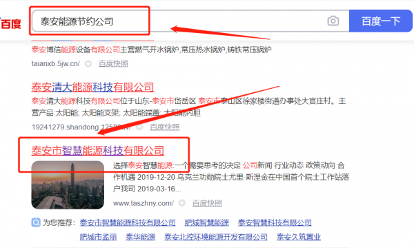 泰安市*慧能源科技有限公司百度關鍵詞排名排名效果展示