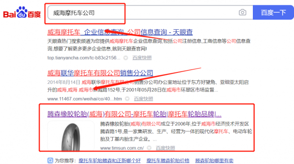 我們公司與騰*橡膠輪胎(威海)有限公司合作中,對(duì)這個(gè)公司所經(jīng)營(yíng)的摩托車這個(gè)行業(yè)提供了網(wǎng)站推廣,與該公司的合作,更多的客戶讓我們公司為其提供SEO優(yōu)化,通過每一次合作,我們公司不斷完善自己,同時(shí)希望合作伙伴在經(jīng)營(yíng)的路上越來越好。