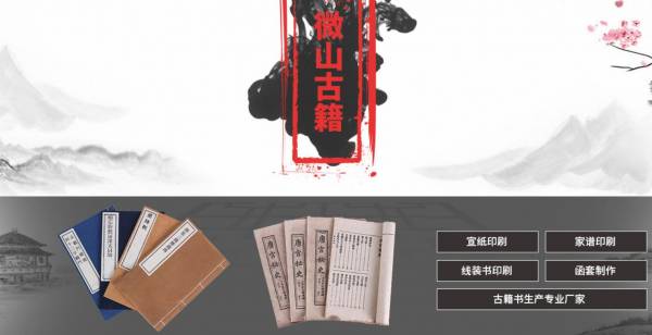 微山縣古*線裝文化發展有限公司選用我司企業印刷耗材行業的網站優化產品,其SEO關鍵詞有 宣紙彩印,古籍線裝書,家譜制作,仿真字畫,地方志經書,微山縣古*線裝文化發展有限公司。其特點是用很合適的展示方式、展示效果、站點框架,把客戶及其用戶很關心的問題突出表現;并以簡潔明朗的設計風格,清晰展現公司水平實力,確保一秒抓住目標用戶眼球,給用戶留下良好的第一印象。微山縣古*線裝文化發展有限公司成立于2013年,是經微山市市場監督管理局審核的有資質的公司,其統一社會信用代碼:9137082608**84380U。公司地址:山東省微山縣經濟開發區。