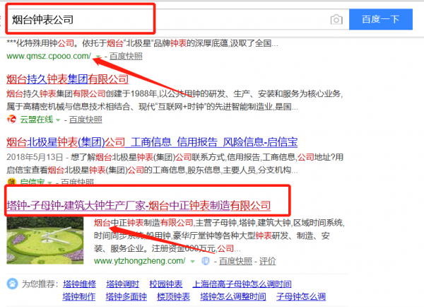煙臺中正鐘表制造有限公司與我司簽下百度霸屏協議