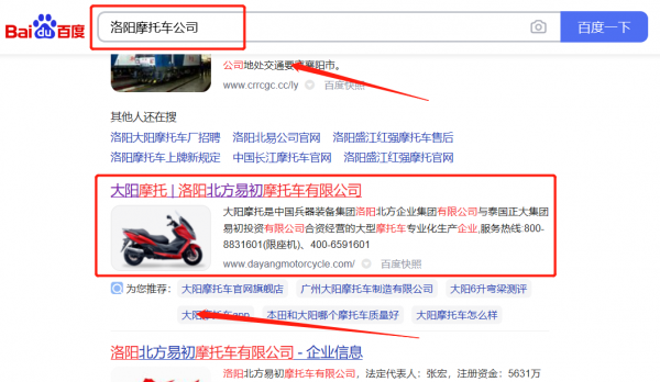 洛陽北*易初摩托車有限公司關鍵詞排名到首頁無排名不收費