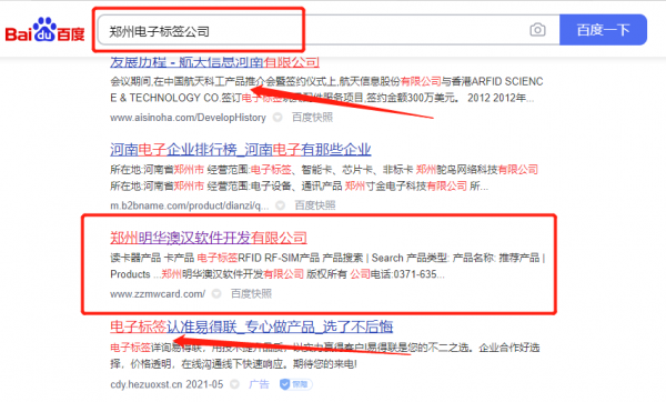 我們公司與鄭州*華澳漢科技有限公司合作中,對這個公司所經營的電子標簽這個行業提供了萬詞霸屏,與該公司的合作,更多的客戶讓我們公司為其提供關鍵詞搜索排名,通過每一次合作,我們公司不斷完善自己,同時希望合作伙伴在經營的路上越來越好。