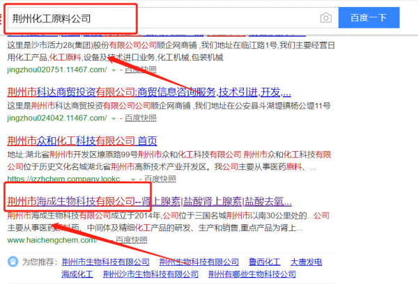 荊州市海成生物科技有限公司選用我司企業化工原料的網站優化產品,其SEO關鍵詞有化工原料。快速優化系統火速推采用智能數據系統,效果一目了然,包括關鍵詞排名,消費,余額等,并通過大量的數據分析優化廣告效果。荊州市海成生物科技有限公司成立于2014年,是經荊州市市場監督管理局審核的有資質的公司,其統一社會信用代碼:91421022316462295K。公司地址:湖北省荊州市公安縣青吉工業園,興業路。
