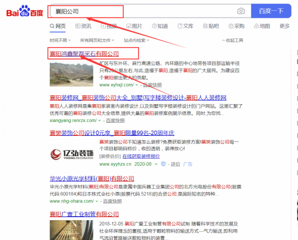 襄陽鴻*聚磊采石有限公司與我司簽下百度關鍵詞排名首頁協議