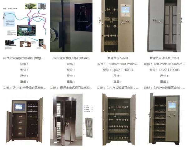 主要設備:數控液壓沖床、數控折彎機、數控剪板機、數控萬能銑床、數控點焊機、進口靜電噴涂生產線。主要產品:智能槍彈保險柜、智能槍庫專用門、生物指紋聯網保險柜、生物指紋聯網提款箱、銀行設備大型聯網管理系統、礦山炸藥庫、金庫房、金庫門、ATM機銀行專用守護神、電器安全智能預警系統、監控、遠程監控聯網系統、安防器材、鈔票清分機、防盜報警器、點鈔機、警用裝備、防彈衣、防彈頭盔、銀行珠寶箱、檔案密集架、信號屏蔽儀、計算機軟件開發、智能鎖具研發、生產、銷售等產品。