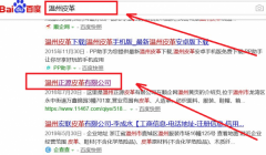 溫州正源皮革有限公司選用我司企業(yè)皮革的網站優(yōu)化產品,其SEO關鍵詞有皮革制品加工、制造。無論你關鍵詞是在20名內、30名內、還是50名內。我們都可以在最短時間優(yōu)化至搜索引擎的首頁。提供后臺管理,排名查詢、關鍵詞管理、財務扣費一目了然,一鍵操作。溫州正源皮革有限公司成立于2014年,是經溫州市市場監(jiān)督管理局審核的有資質的公司,其統(tǒng)一社會信用代碼:91330303